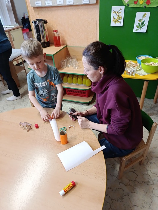 Lepili jsme, stříhali a zažehlovali korálky. Vytvářeli jsme kuřátka, malovali vajíčka a v neposlední řadě jsme plnili úkoly na školní zahradě – jarní stezku.