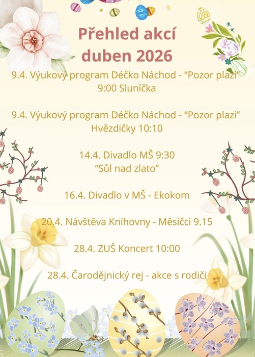 Úvod > Pracoviště > Vančurova > Vančurova - aktuálně > Plán akcí - duben